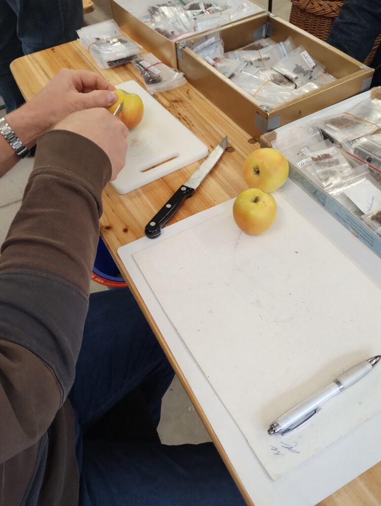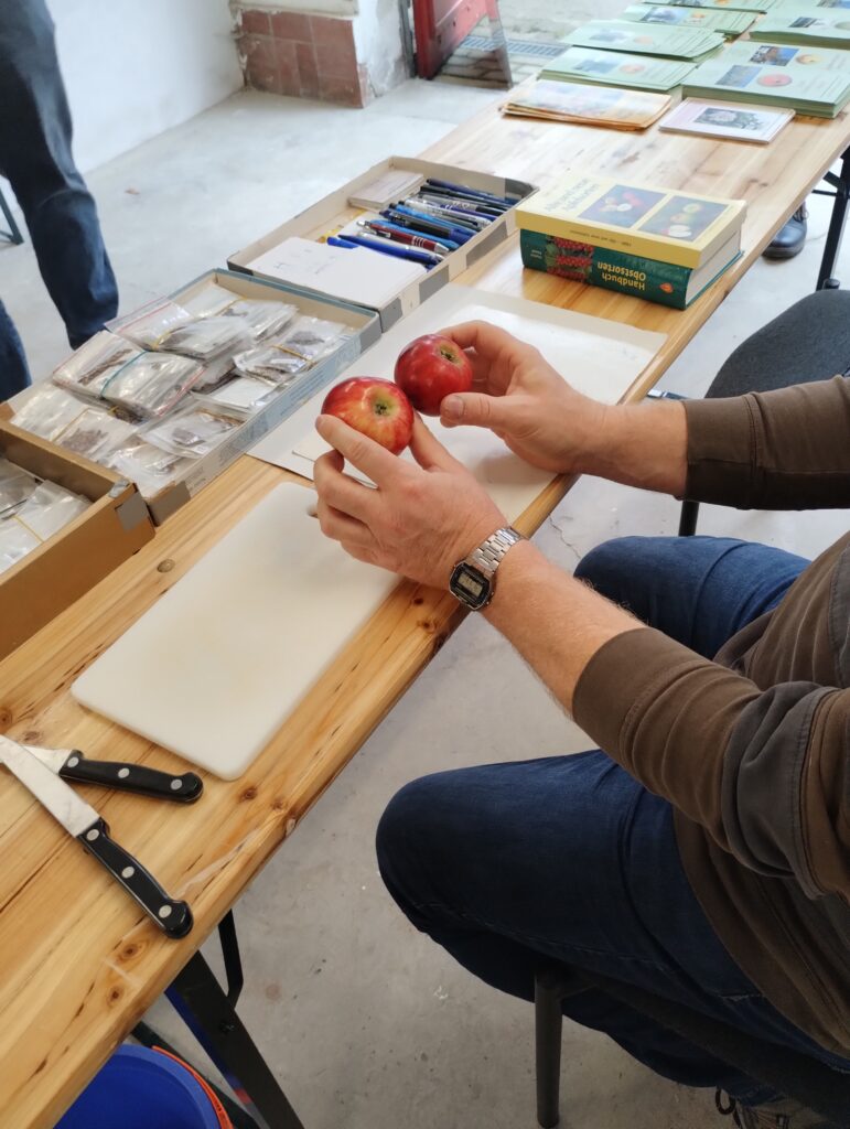 Neben der Sortenbestimmung standen vor allem der Austausch von Wissen und Erfahrungen im Mittelpunkt. Bei Kaffee und hausgemachtem Apfelkuchen entstanden zahlreiche spannende Gespräche rund um den Obstanbau, alte Sorten und die Pflege von Streuobstwiesen.