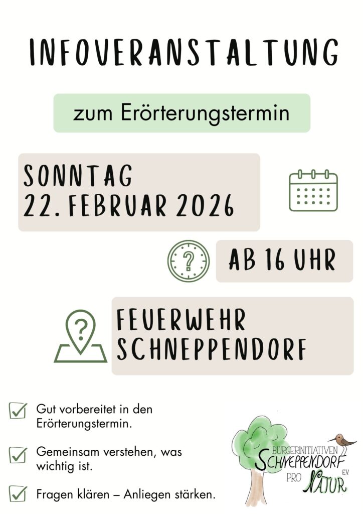Teilnehmen können nur Personen, die vorher eine Einwendung abgegeben haben, sowie anerkannte Vereine und beteiligte Behörden.